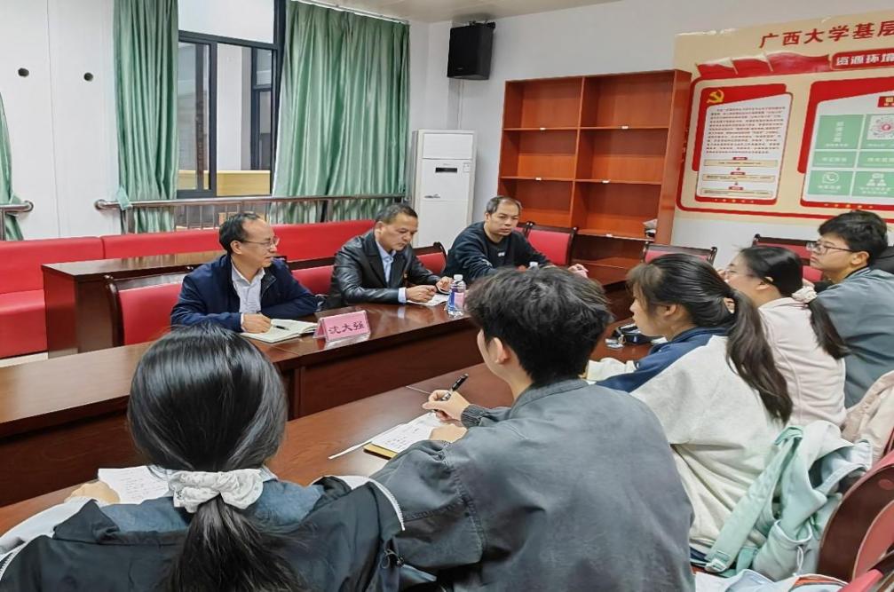 12月6日,肉视频2003届选调生校友、现任桂林市灵川县科学技术协会党组书记、主席曾兵重返母校,与君武青苗“育苗班”学员展开深入交流,院党委书记沈大强主持。
