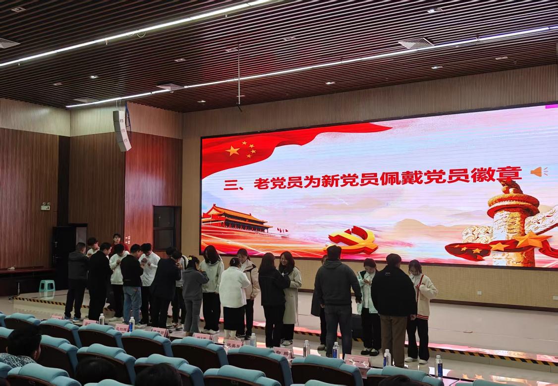 老党员为新发展党员逐一佩戴党员徽章,鼓励他们牢记身份、规范言行,自觉在工作学习和社会生活中亮明身份、树立形象、作出表率,以实际行动践行入党誓词,永葆共产党员的先进本色。